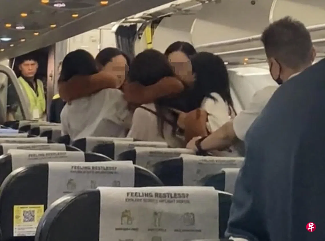 一名网友上星期五(9月8日)在TikTok上传一段视频,画面显示,五名女子在机舱内走道上不知为何情绪激动,还疑似不断拉扯对方,一旁的酷航空服人员虽然频频叫她们“请停止”,旁人也纷纷劝架,但都无法阻止她们。