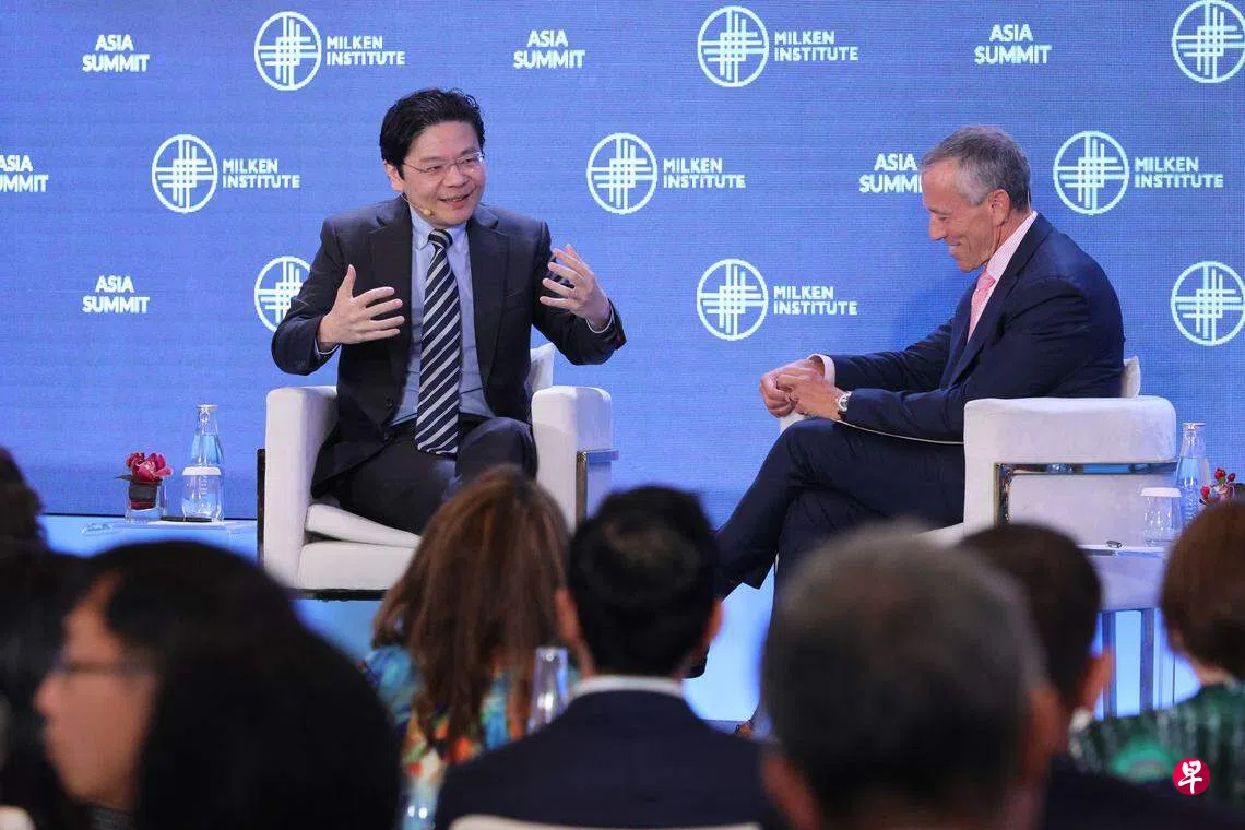 黄循财星期三(9月13日)出席米尔肯研究所亚洲峰会(Milken Institute Asia Summit),回答米尔肯研究所总裁迪提齐奥(Richard Ditizio)的提问时,谈到政府如何维护一个平等的社会。