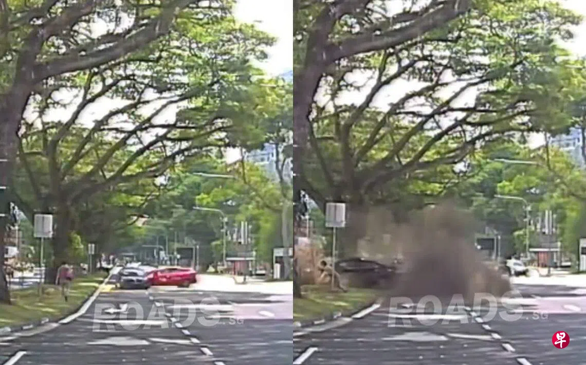 这起车祸发生在星期天(9月17日)下午2时许,地点是朝马里士他路方向的摩绵路,在曼德礼路的交界处。网上流传的视频显示,事发前一辆轿车沿着摩绵路直行,一辆德士突然从曼德礼路冲出猛撞轿车。猛烈的撞击力导致轿车撞上分界堤上的一棵树,德士则撞过分界堤冲入反向车道。