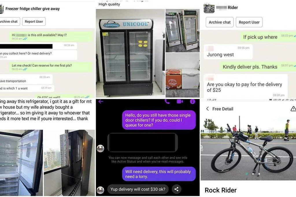 在“免费捐赠”骗局中,诈骗分子会在脸书、Telegram,以及Whatsapp等平台发布贴文,声称自己有二手或闲置物品要免费送出。这些物品包括脚踏车、冰箱和洗衣机等需要运费的大件物品。