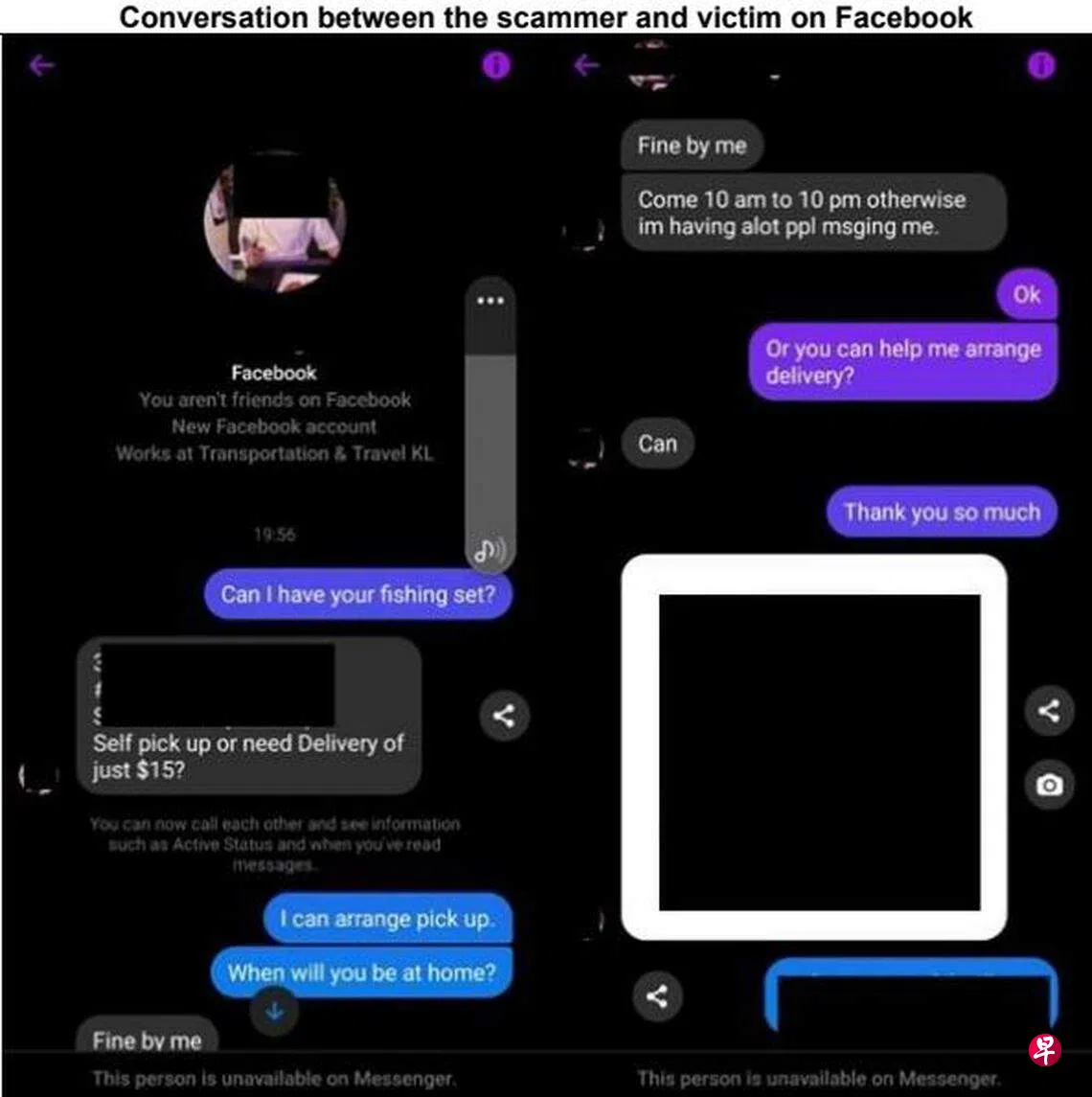当受害者通过平台私信联系上骗子,表明想要这些二手物品时,骗子就会要求受害者通过网银转账(如PayNow)或电子钱包(GooglePay或新电信Dash)支付一笔运费或者定金以预留物品。但最终“免费”物品并不会如期运送上门,运费和定金也会不翼而飞,受害者这时才发现自己上当。