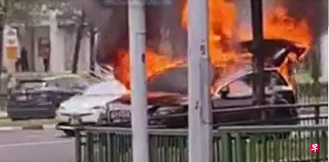 根据社交媒体页面sgfollowsall上载的视频,画面显示一辆停在交通灯前的黑色奥迪休旅车着火,火势猛烈,旁边许多车辆都避开它前行。