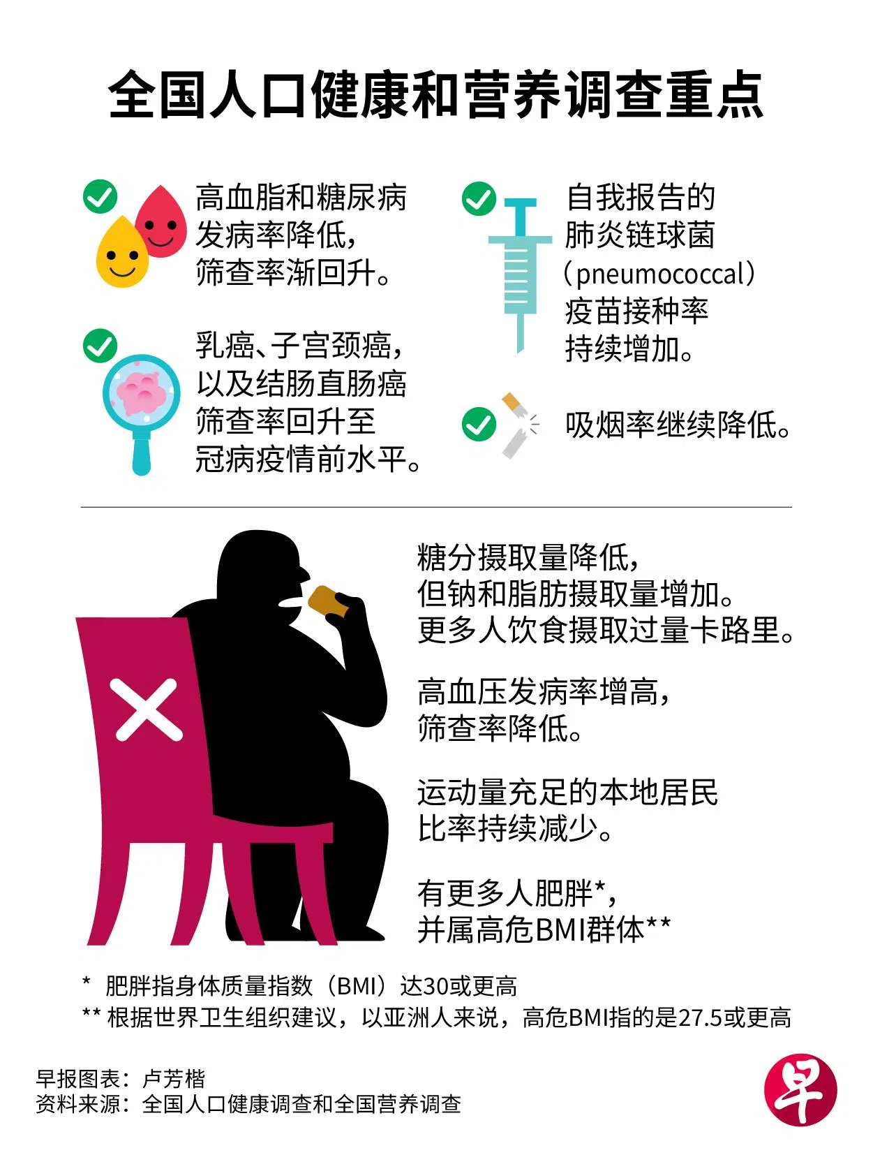 卫生部和保健促进局星期三公布2022年全国人口健康调查,以及2022年全国营养调查最新数据。