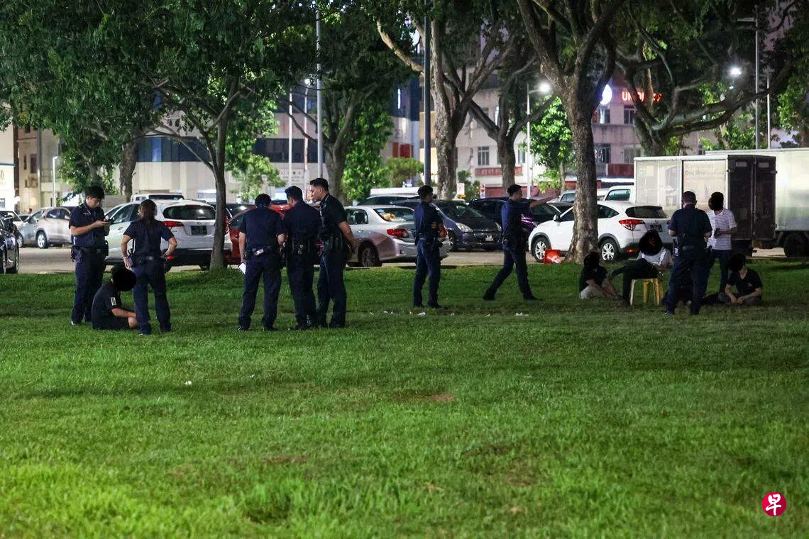 《联合早报》记者路过现场时,看到阿裕尼地铁站附近的草坪有数十名警员,正对相信是涉嫌殴斗的五人问话。