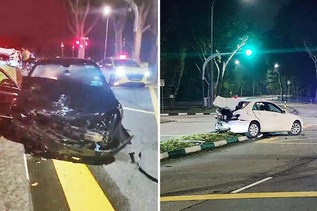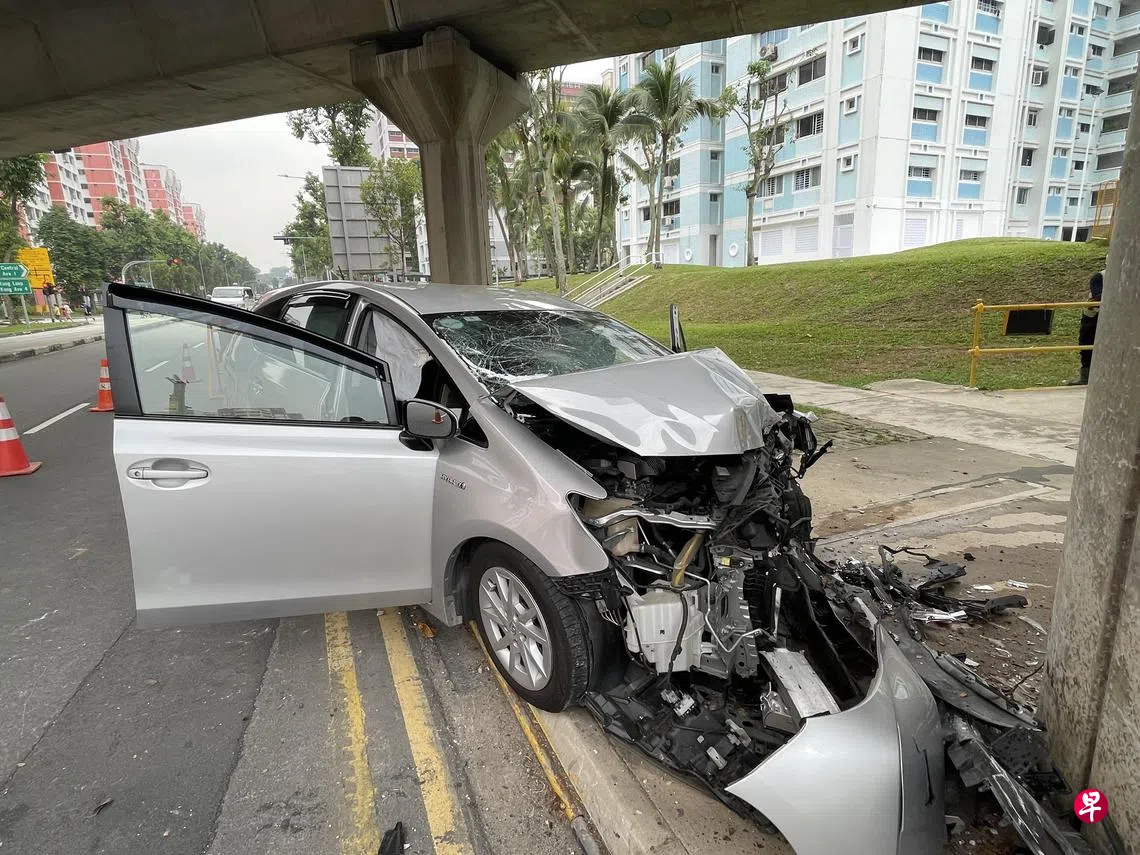 蔡厝港星期六(9月30日)早上发生车祸,一辆轿车失控撞上轻轨的轨道柱子,安全气囊弹出,男驾驶受伤送院。