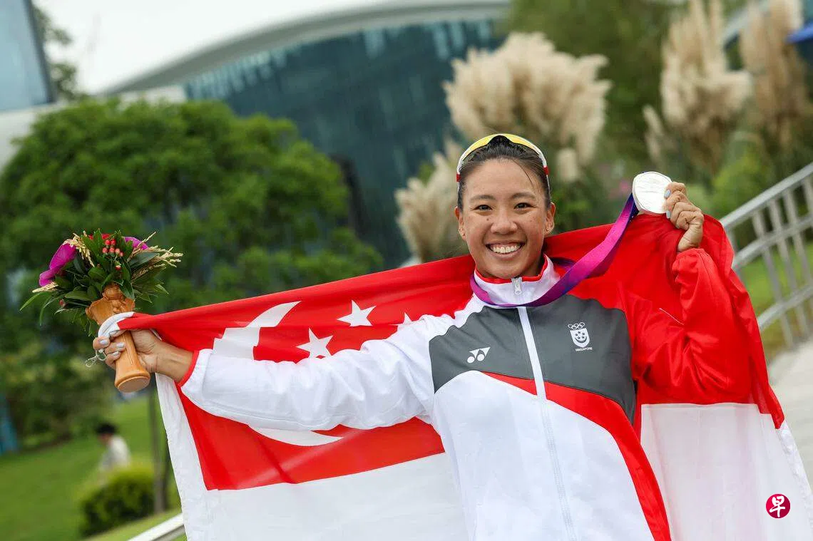 闯入杭州亚运会皮划艇五项决赛的新加坡皮划艇队,星期二(10月3日)终于在漂亮的富阳水上运动中心取得突破,陈洁娴在女子单人皮艇500米决赛中以2分00秒074勇夺银牌,创造了皮划艇队在亚运会上的最佳成绩。