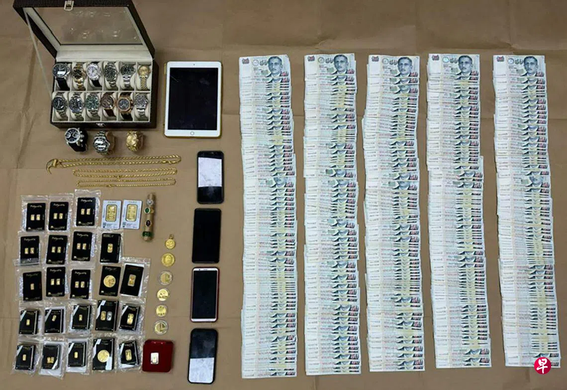 刑事侦查局的人员分别在星期三(4日)和星期四(5日)突击两名嫌犯的住家,逮捕年龄分别为56岁和32岁的男子。警方也起获了总值超过24万新元的加密货币、超过2万5000元的现金、15支名表、34块金条、七枚金币、三枚戒指、一台平板电脑iPad、五部手机等物品。