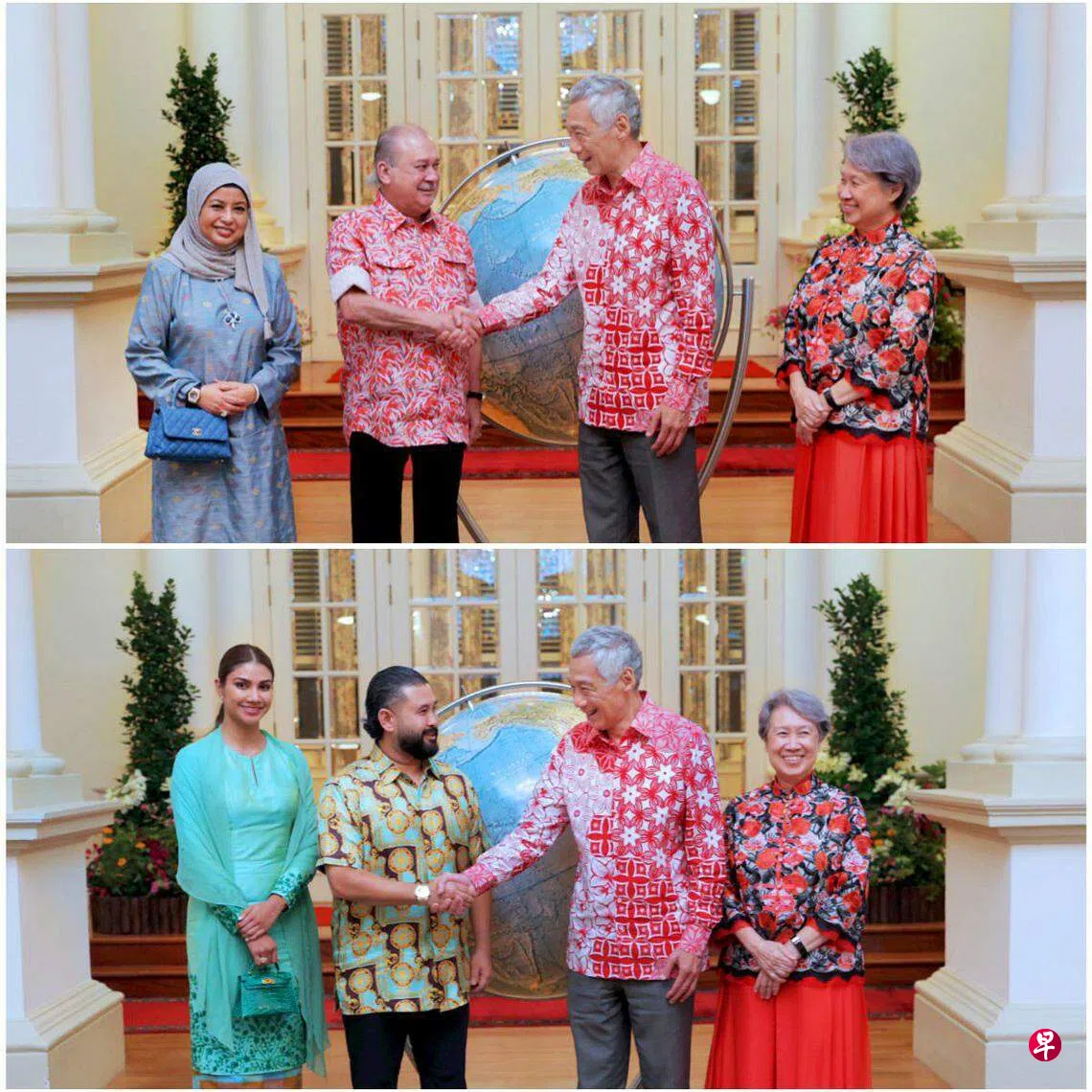 李总理和夫人何晶星期二晚上在总统府设晚宴,招待到访新加坡的柔佛州苏丹依布拉欣与苏丹后拉惹查丽苏菲亚,以及柔佛王储依斯迈和王储妃卡丽达。