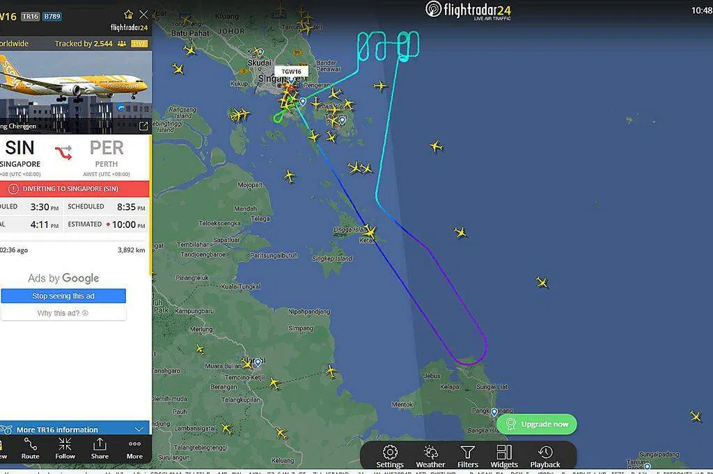 受影响的酷航TR16班机原本星期四下午3时30分起飞,并预计在8时35分抵达澳大利亚珀斯。