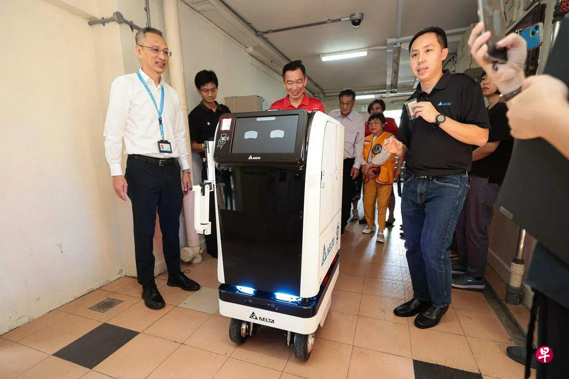 机器人能够自行乘搭组屋电梯,上楼直接走到单位门口,为体弱或行动不便的年长者送餐和送药等,既方便年长者,又能舒缓人手不足的问题。