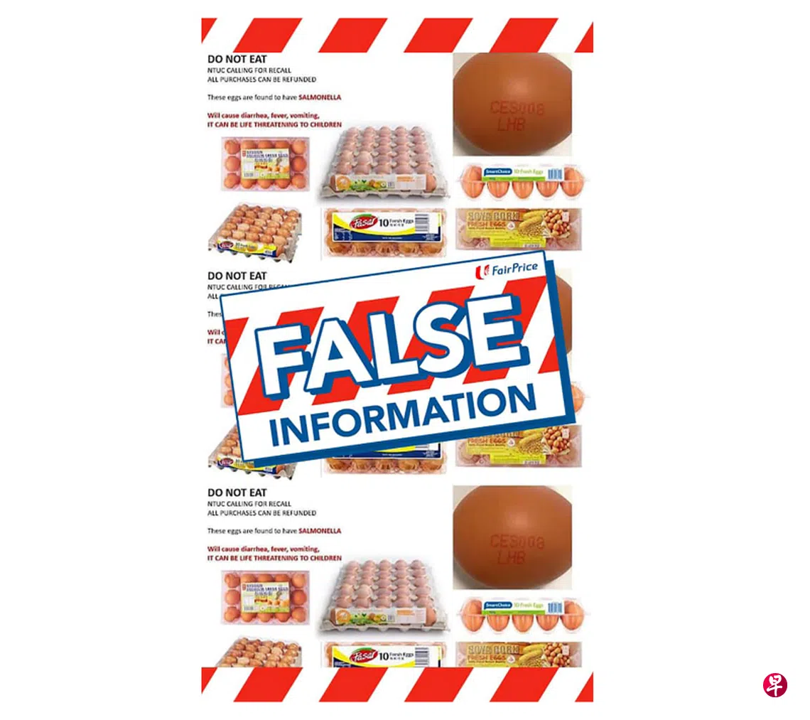 最近WhatsApp流传一则短信,指职总平价超市售卖的鸡蛋含有沙门氏菌,超市正在召回,顾客可要求退款。职总平价于星期六(10月14日)在脸书发文澄清,这消息不属实,旗下没有任何一家店面在召回鸡蛋。