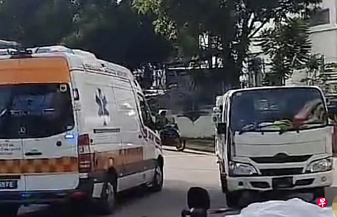 根据视频画面,肇事罗厘前方倒卧着一个人,身上盖着白布,旁边则停着一辆救护车。另外,附近还有一个头盔和一个电单车尾箱,相信皆属于死者。