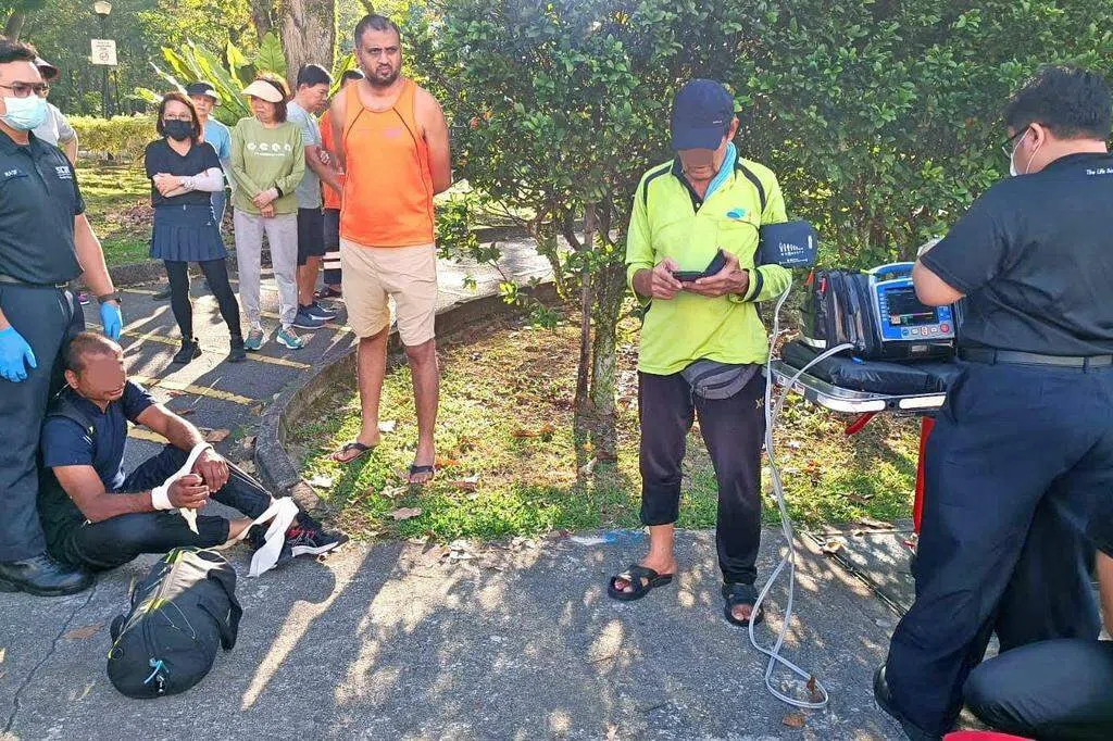 在另外一起不相关的事件中,被告和同伙在同天傍晚时分也在组屋楼下,被告于5时45分报警声称同伙身上有刀。被告当天被捕。