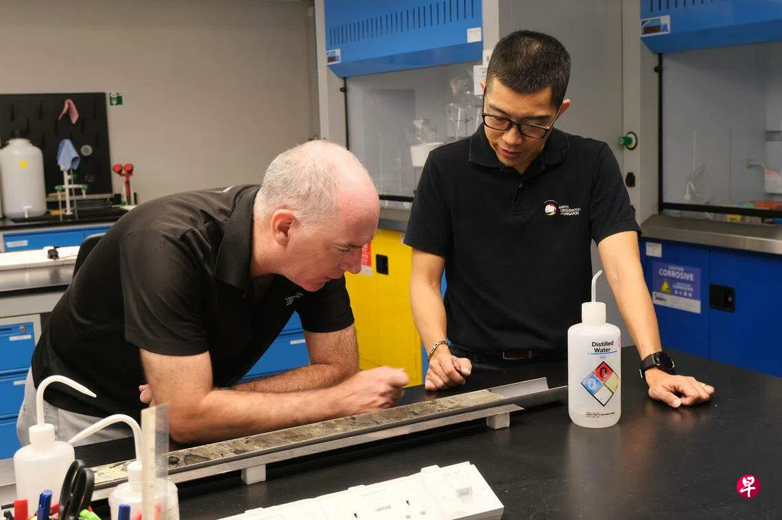 南大新加坡地球与观测研究所(Earth Observatory of Singapore)助理教授蔡忠伟和南大亚洲环境学院教授亚当·石艾得(Adam Switzer),日前在滨海南靠近加冷内湾(Kallang River Basin)的地段挖掘土地,对沉积物的组成、结构以及碳同位素(carbon isotopes)等进行分析。