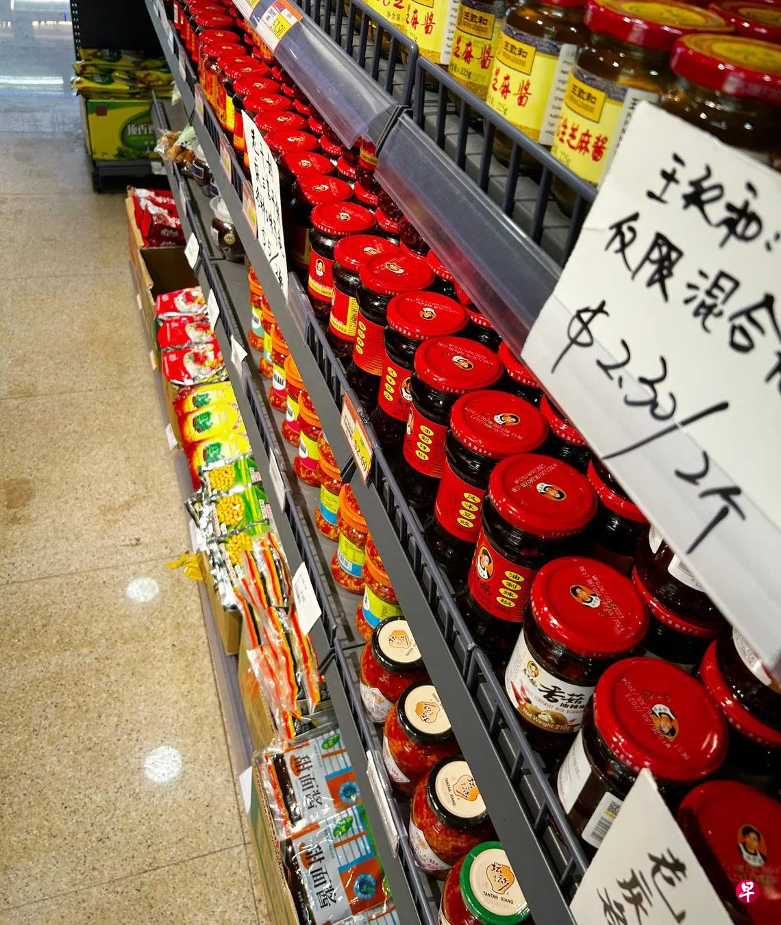 店长指出,好卖的辣菜酱每天都会补货,当商品临近保质期约一两个月时,就会进行促销。