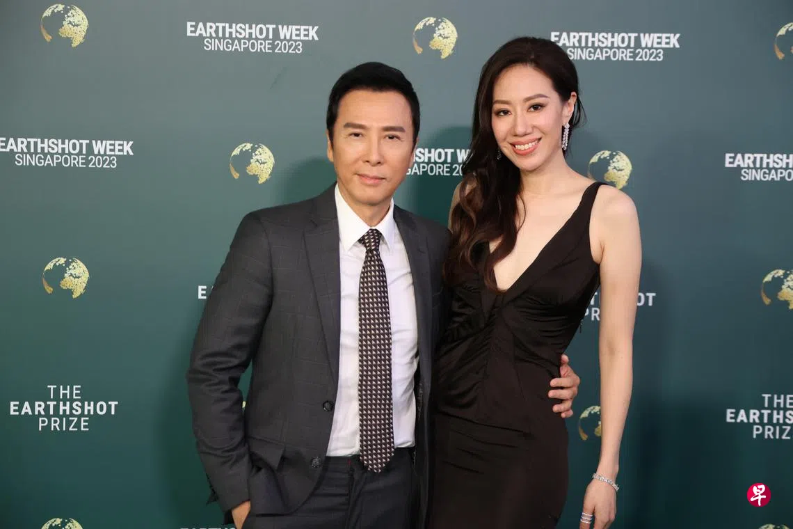 香港艺人甄子丹偕妻子汪诗诗星期二(11月7日)出席在我国举办的“为地球奋斗”环境奖颁奖典礼。