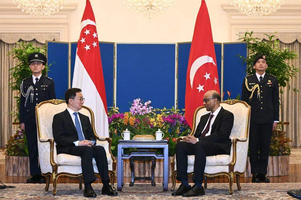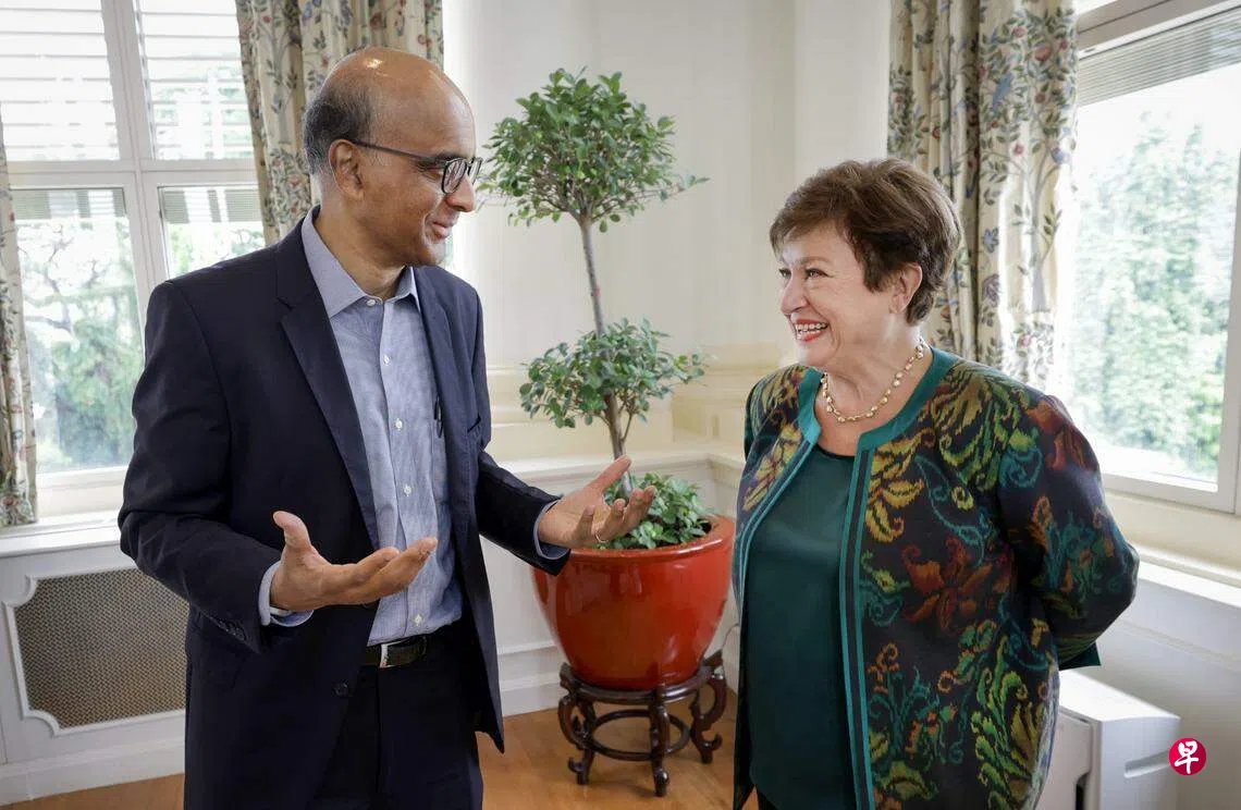 在新加坡出席活动的国际货币基金组织总裁格奥尔基耶娃,同我国总统尚达曼会晤。