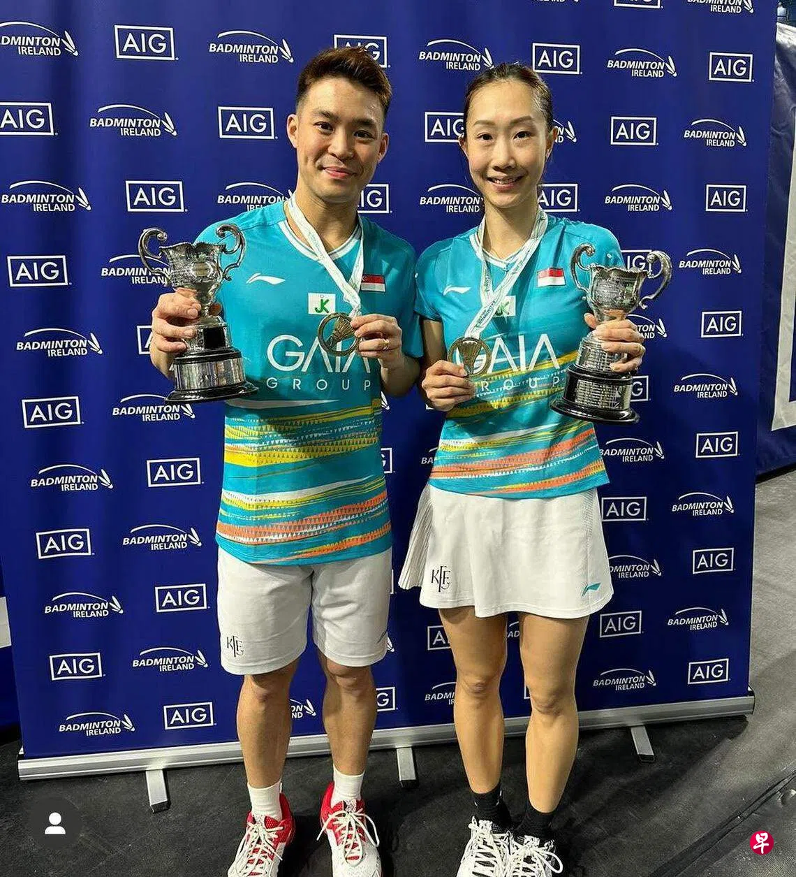 我国羽毛球混双夫妻组合许永凯/陈薇涵星期六(11月18日)在爱尔兰羽毛球公开赛混双决赛,三局力克同为夫妻的英格兰组合格雷戈里·梅尔斯/珍妮·梅尔斯拿下冠军。这也是我国夫妻档在今年赛季收获的首个冠军。