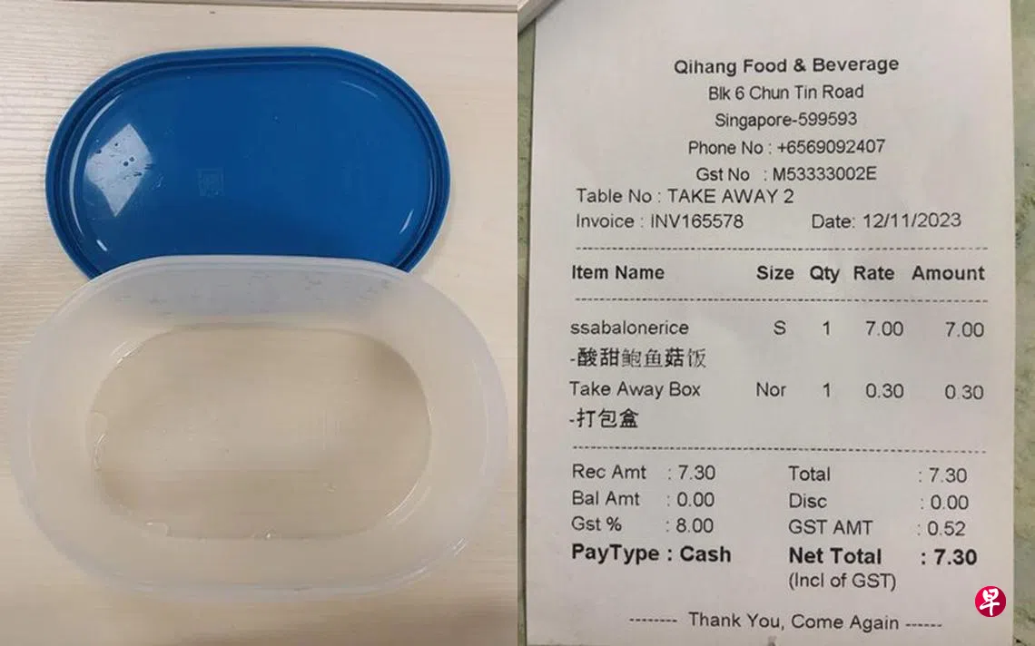 “政府在2020年就推广自带便当盒的环保活动,我都自己带便当盒,餐馆也应该环保。”感到愤愤不平的陈先生,事后也将遭遇告知STOMP网站。