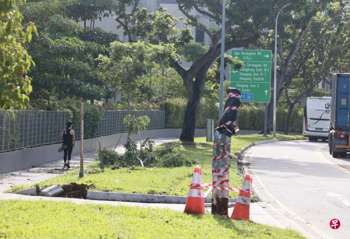 被撞倒的路灯已被陆路交通管理局人员用封条围起来。