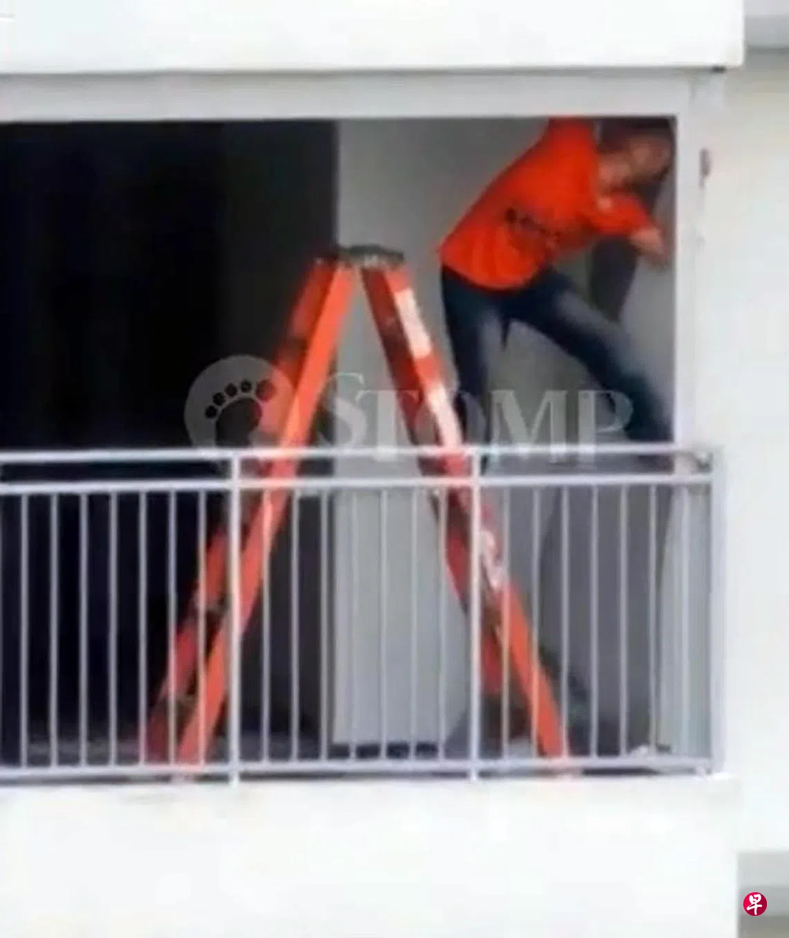 他形容说,对方一脚踩在梯子,另一只脚踩在阳台的墙沿,看起来十分危险。