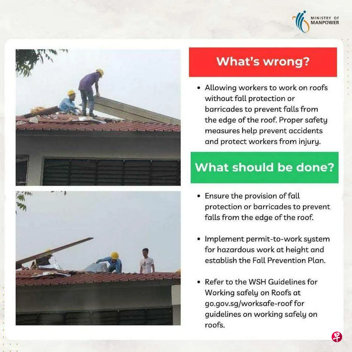 人力部强调,雇主应确保工地有足够的安全措施,以降低施工时可能面对的风险。员工须遵守必要的安全工作程序,一旦发现不安全的情况,应向主管汇报或通过SnapSAFE向人力部举报。