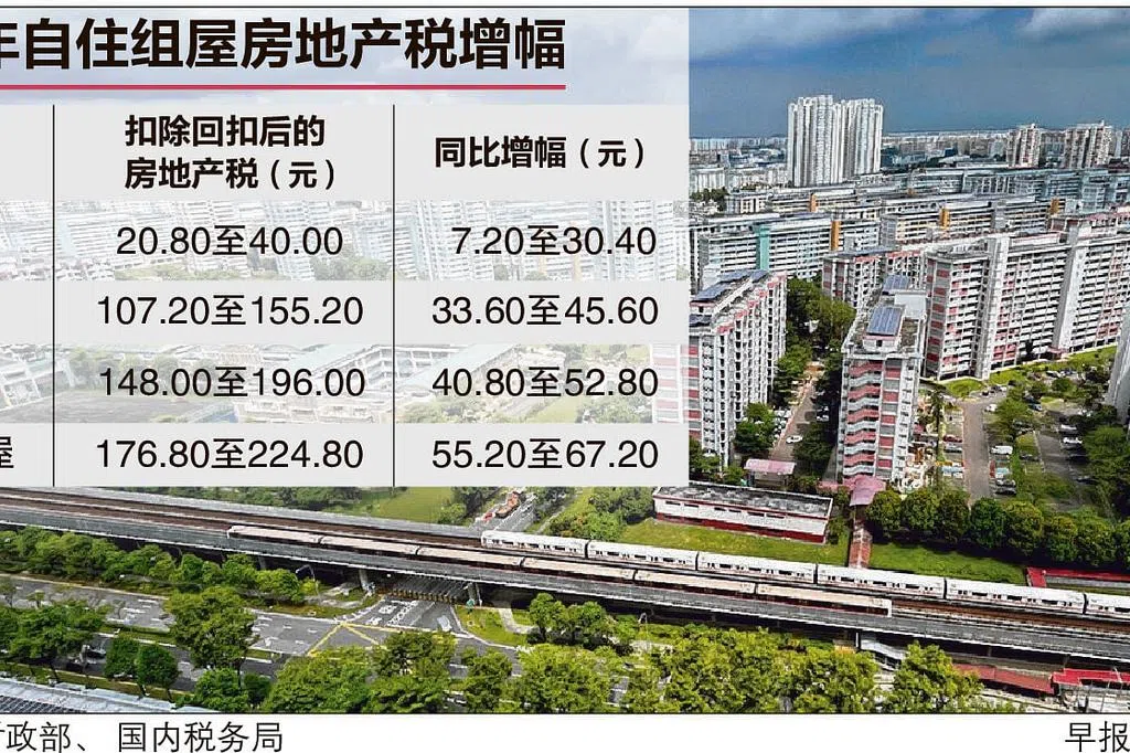 三房、四房、五房和公寓式组屋的回扣比率为房地产税的70%、50%、40%和30%。整体来说,这四个类别的组屋,明年每月平均增加的房地产税少过3元。
