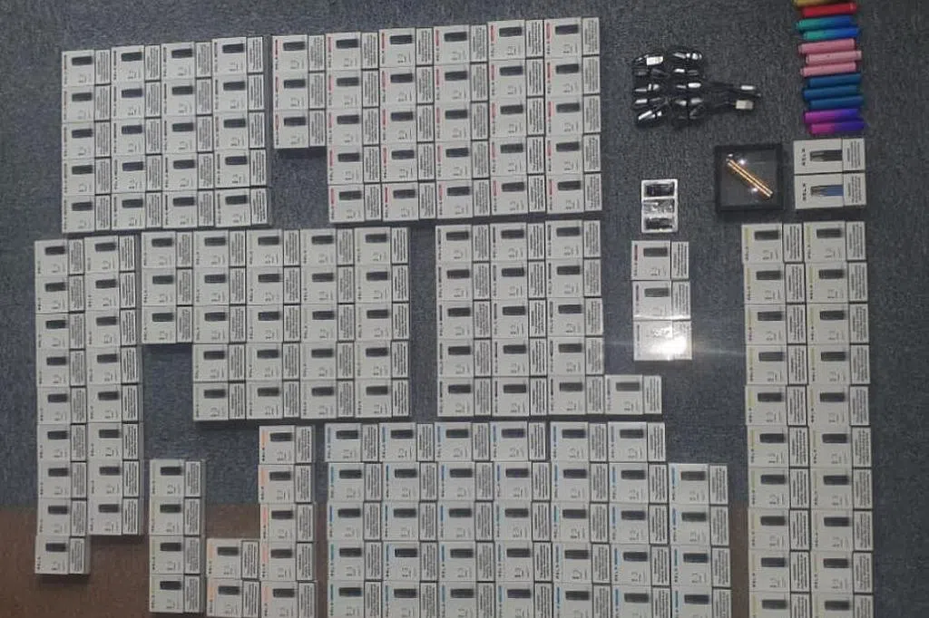 作为调查的一部分,卫科局也对18岁青年位于大巴窑的住所进行了搜查,并在他家中起获700多个电子烟和相关配件,总市值约1万5400元。