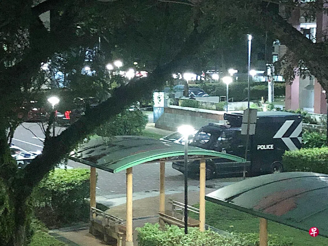 读者刘先生(25岁)通知《新明日报》,星期一晚上大约10时许经过上述地点,发现大约六辆警车以及一辆黑车在组屋楼下。