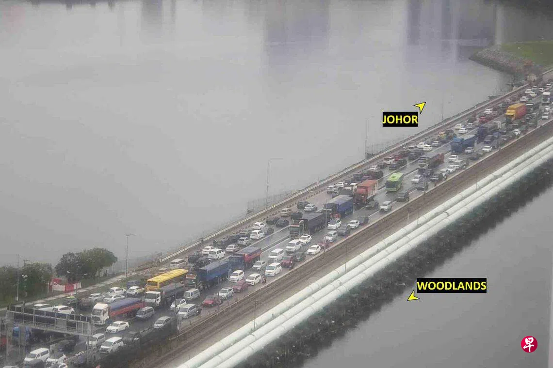 根据手机应用Checkpoint.sg的路况,截至星期三早上11时47分,新柔长堤双向车道排起长龙,从兀兰关卡进入新山的通关时间估计为60分钟至90分钟,比一般等候时间要长。