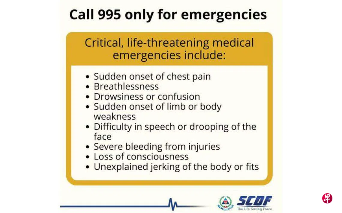 紧急医药服务求助电话激增,为把有限资源用在危急情况,当局吁请公众非紧急勿拨打995。