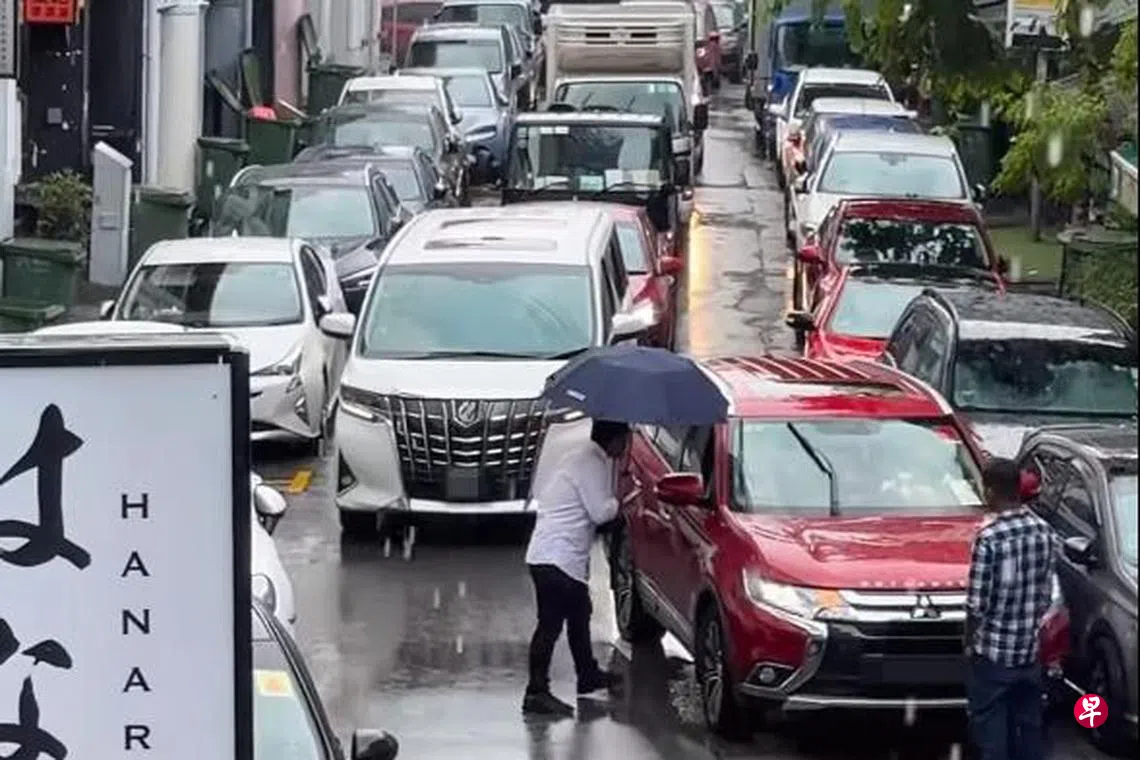 赛义德说,一般接近晚上时分,才会有更多人来商业街,路段的交通才会比较繁忙。“事发时下着雨,车子并不多,但这辆红色汽车挡路,其他车子难以通过,才导致交通堵塞的情况。”