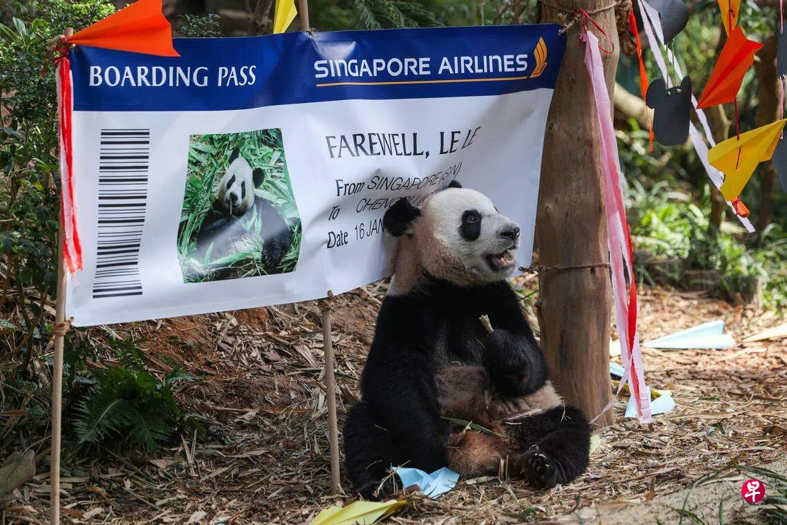 首只在本地出生的大熊猫叻叻,在新加坡度过了两年四个月时光,星期三(12月13日)是最后一天在园区与公众见面,园区特别准备了一场欢送会。