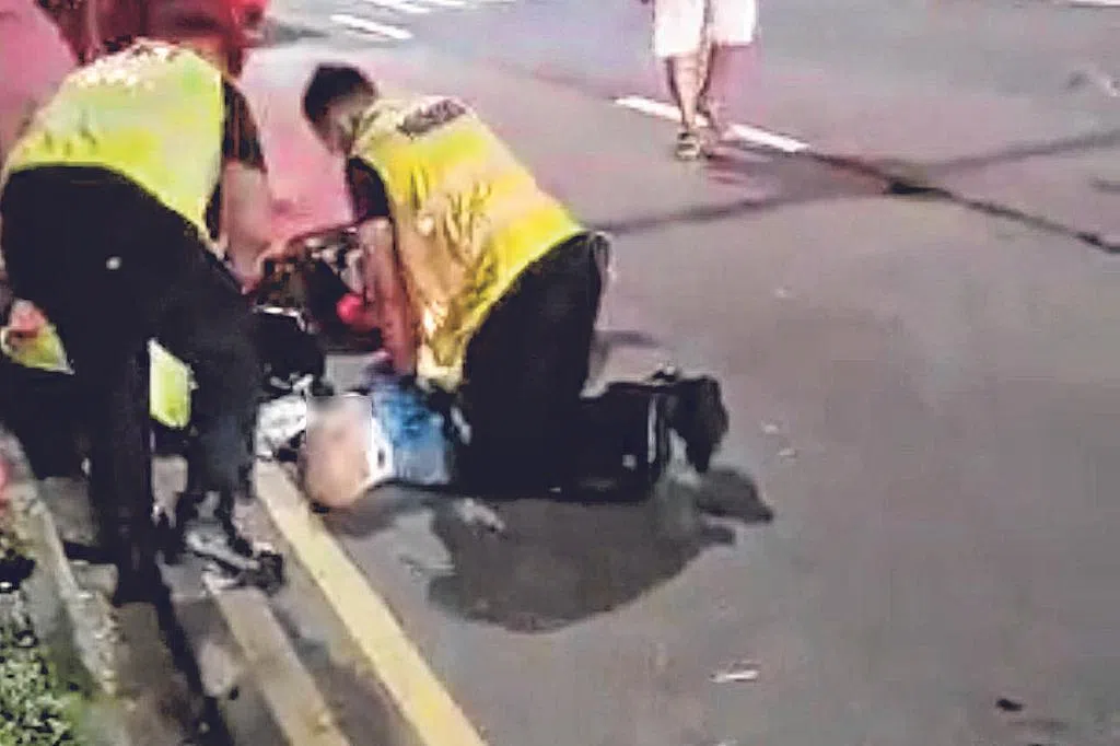 根据记者观察,大约下午1时许,一名男伤者被送上救护车。另有一名男子坐在路边接受医护人员治疗,他当下戴上了颈箍后被送上救护车。