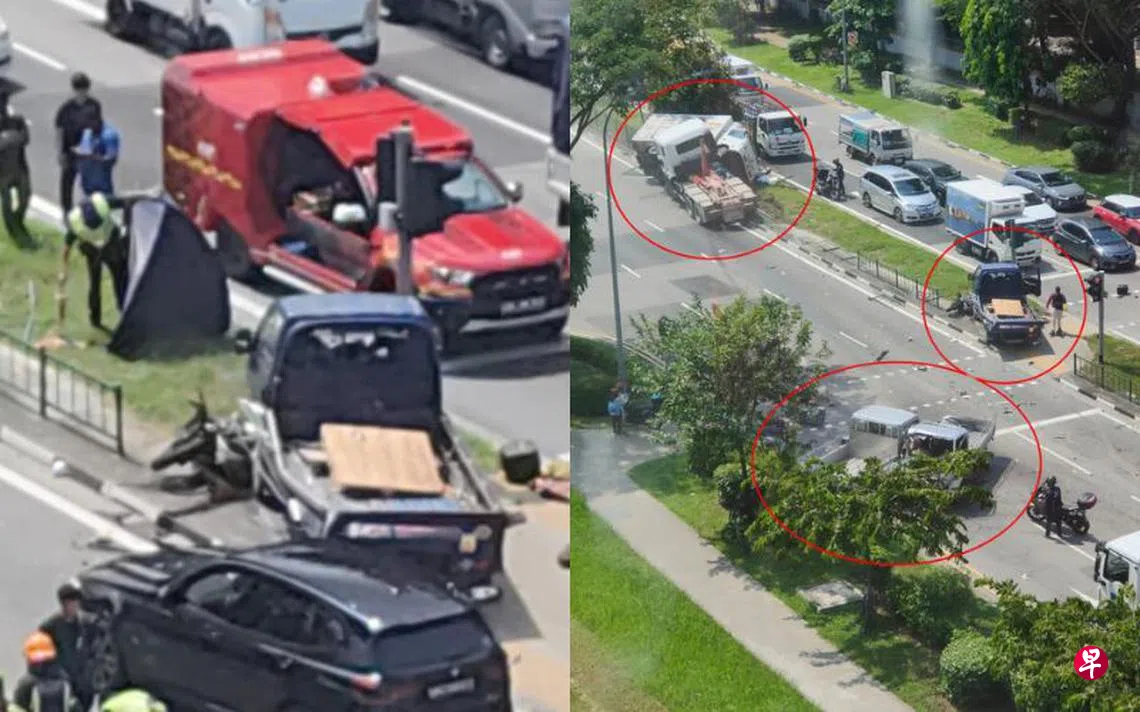 兀兰路六车连环撞,涉及三辆罗厘、一辆货车、一辆拖车头以及一辆电单车,骑士被卷入车底丧命。