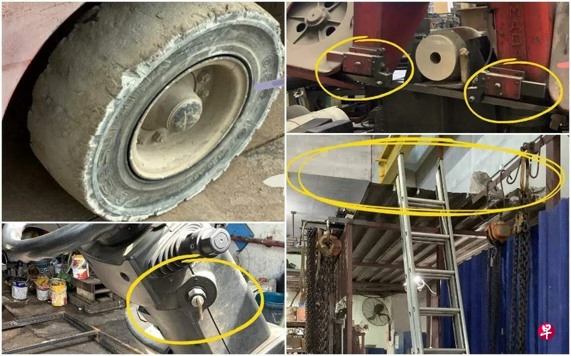 根据人力部张贴的照片显示,一些厂房或工地没有采取足够的安全措施,或导致工伤事故。例如,可让人高处坠落的开放空间,没有安装护栏或栏杆,梯子也没正确摆放。