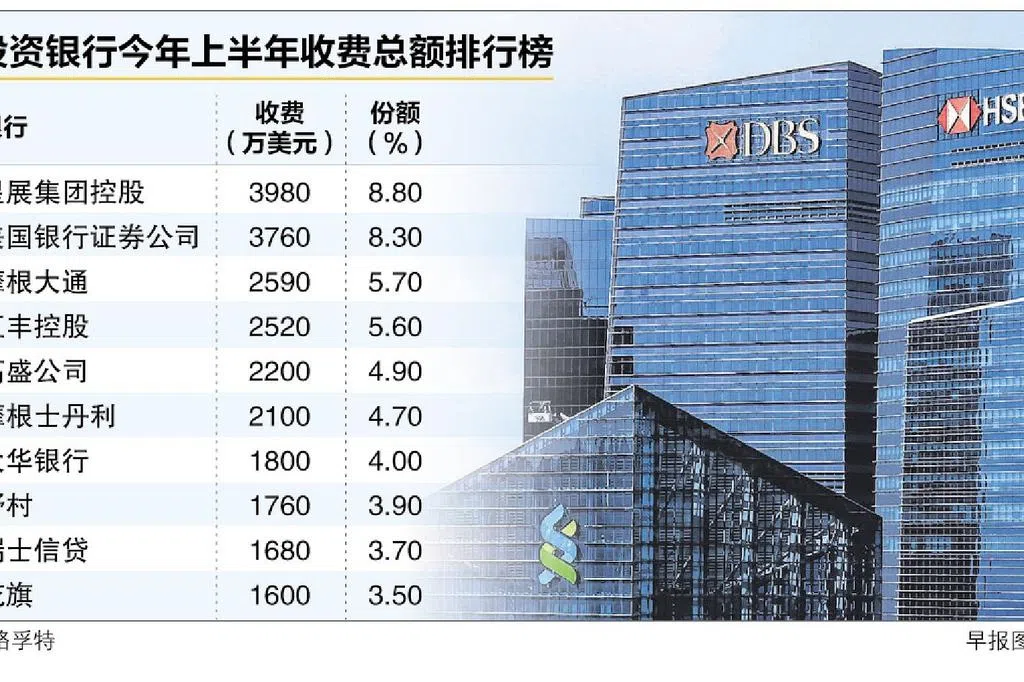 与去年比较,今年的投资银行收费减少了24%,预计达到6亿6490万美元。由于并购交易的金额退低,投资银行赚取的咨询费用也减少41%至2亿零500万元。依据目前的数据,星展集团赚取的费用最多,占14%或9440万美元。