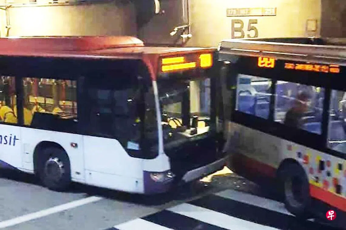 文礼巴士转换站发生车祸,两辆巴士相撞,20名乘客受影响,四人受伤送院,一名56岁车长被捕。