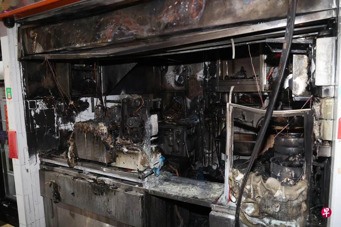 梁先生说,现场的清洁工趁着热心食客往摊位灌水灭火时,赶紧拨电向民防人员求助。“民防到场后拉开铁闸灭火。”