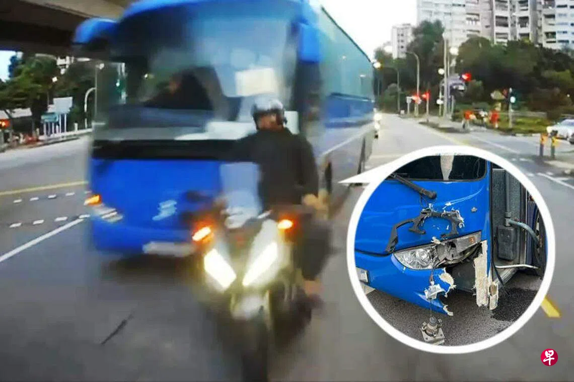 社交媒体上流传的视频显示,电单车和巴士原本都在同一个车道上行驶,行驶在后方的巴士当时打了信号灯打算驶入右边车道。