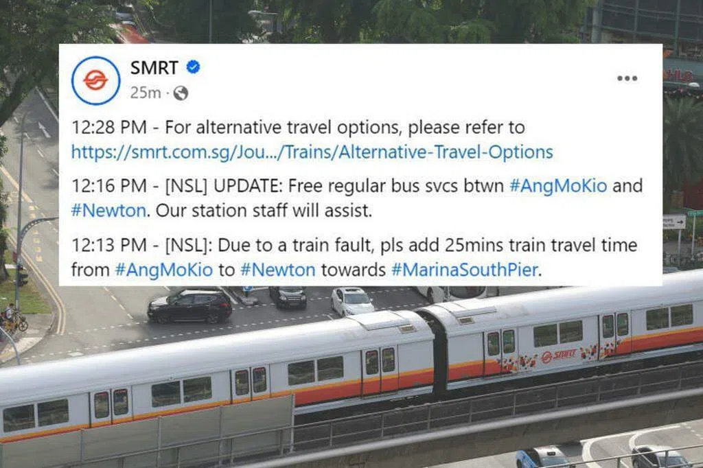 除了在站内广播通知乘客,建议他们转乘其他地铁线,SMRT也为受影响的乘客提供免费巴士服务。