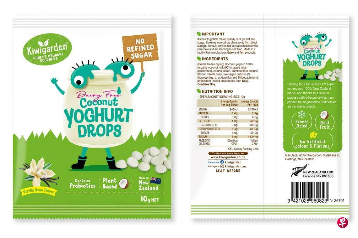 据食品局星期六(1月13日)的文告,Kiwigarden已主动从新西兰召回椰子香草不含乳制品酸奶溶豆(Coconut Vanilla Dairy Free Yoghurt Drops)。由于这款食品也进口到新加坡,食品局要求进口商Optimo Foods有限公司召回受影响的产品。召回行动还在进行。