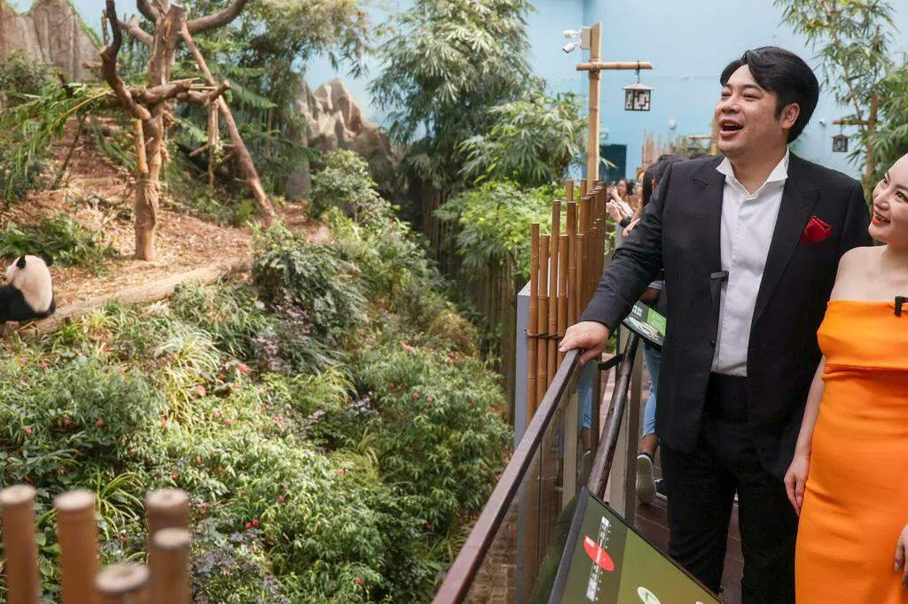 叻叻在定制的笼舍内吃竹子,护理团队花了很多时间通过训练让它做好准备,以适应笼舍,并尽可能感到舒适。 (万态保育集团提供)