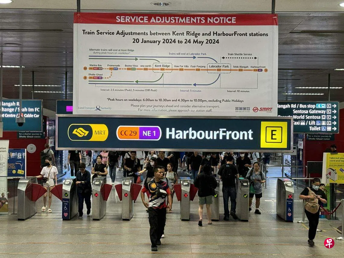 直落布兰雅站和港湾站一侧月台从星期六(1月20日)起至5月24日暂时关闭,以进行环线第六阶段轨道整合工程。《联合早报》记者星期六早上走访拉柏多公园站、直落布兰雅站和港湾站及附近巴士站,了解列车服务调整对乘客带来的影响。根据记者观察,当局安排得当,多数受访乘客皆认为影响不大。