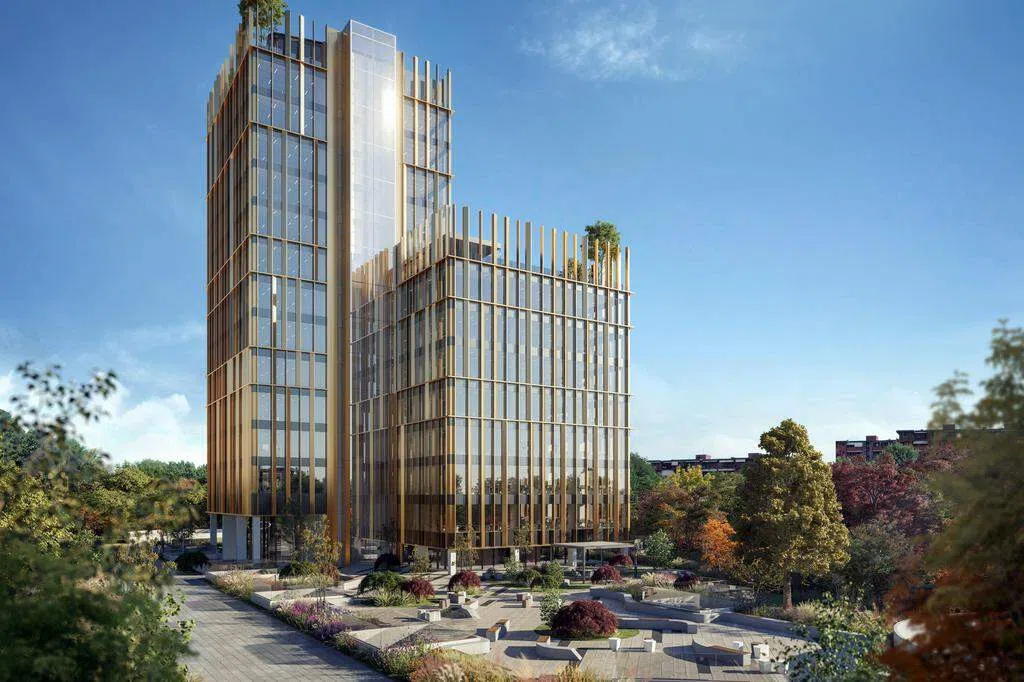公司表示,这座办公楼已完成建造,目前只剩下底层和园景绿化工程,租户也在进行内部装修。
