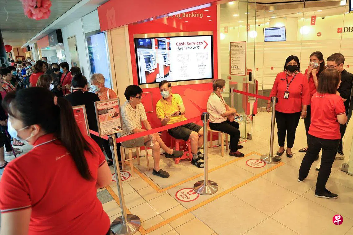 《联合早报》记者星期三早上7时50分走访大巴窑中心,发现星展银行分行外,已排起约30人的队伍,现场有约七名工作人员帮忙维持秩序,以及向年长者细心讲解。