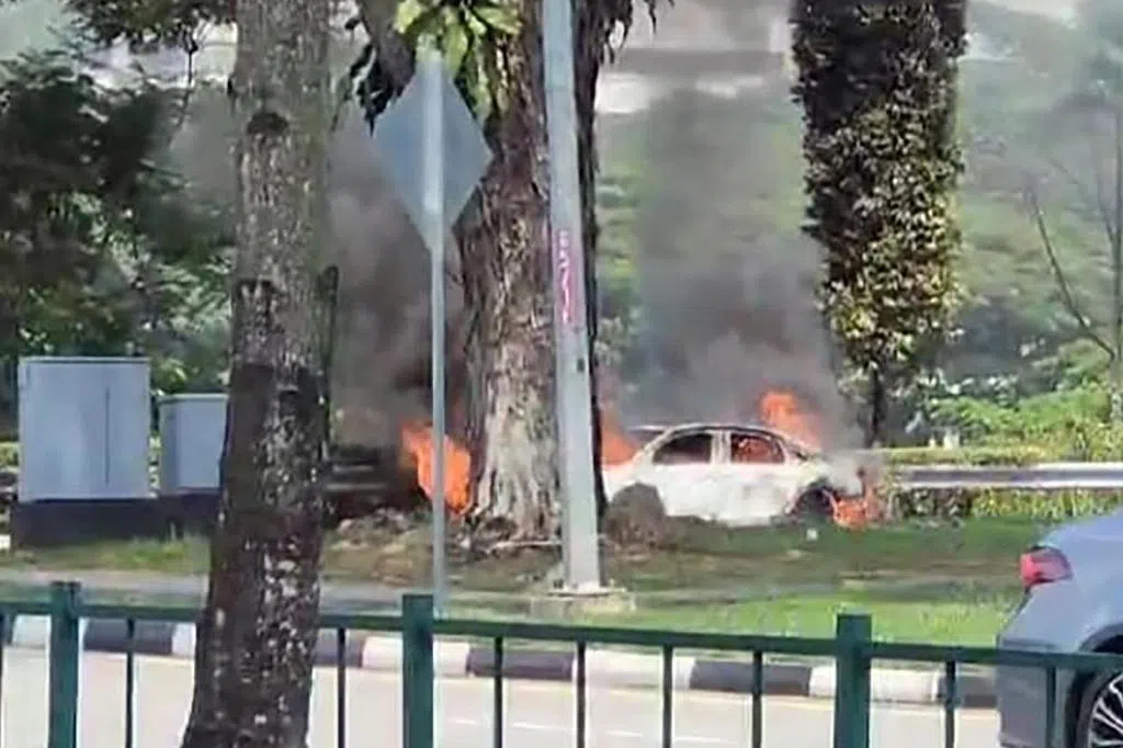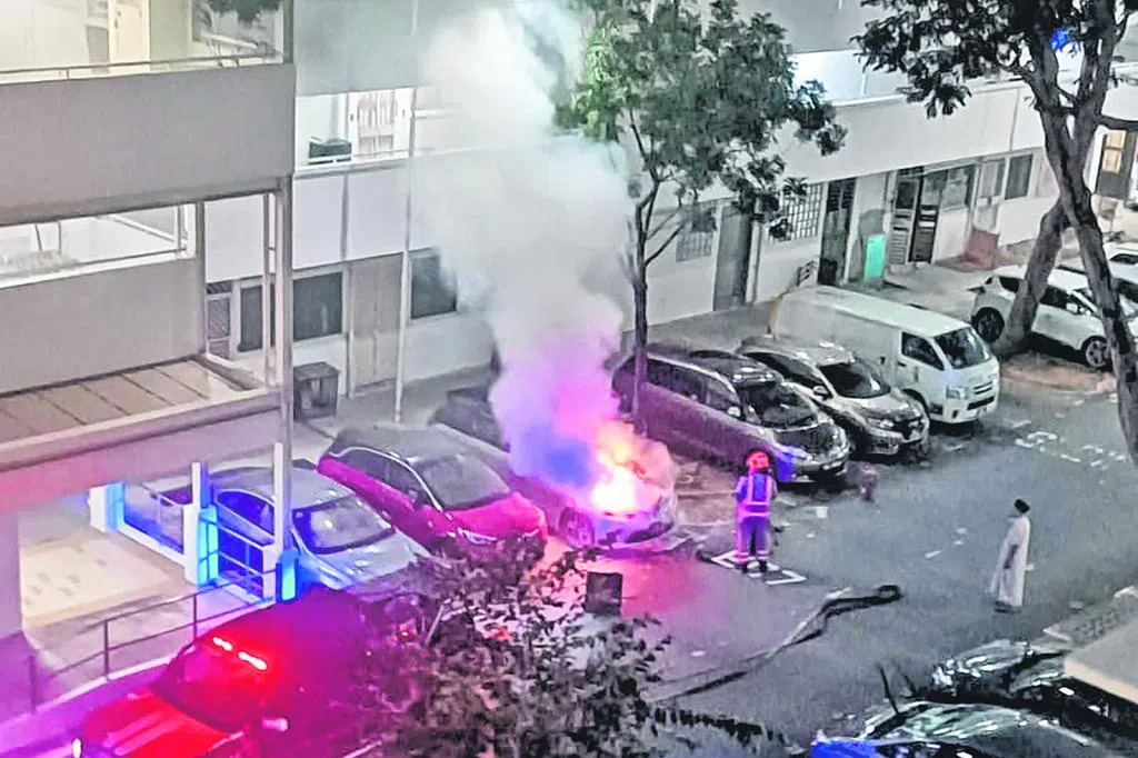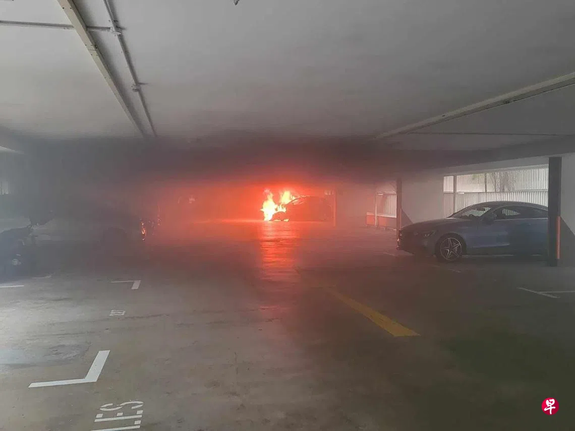 她透露,事后看到一名身穿白衣的男子出现,相信是车主。根据受访者提供的照片,一辆本田轿车的引擎盖部分起火,停车场弥漫着浓烟,所幸当时旁边没有其他轿车。