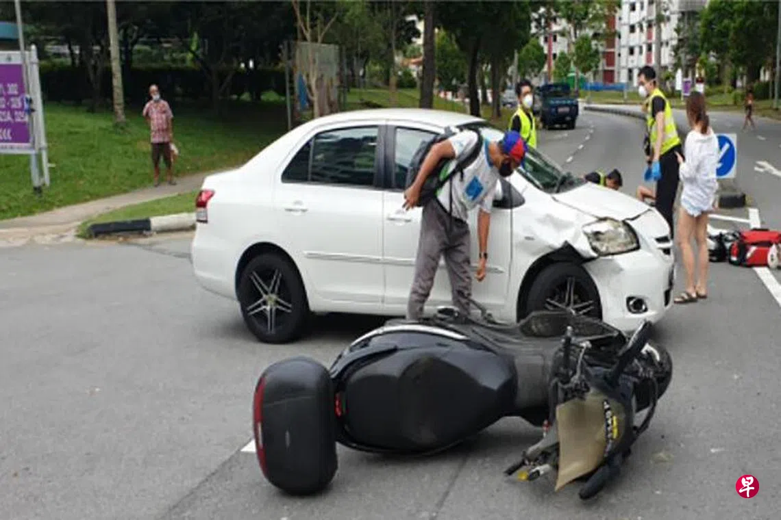 电单车骑士穆罕默德·奥马尔·法鲁克(35岁)来自印度,他在遭被告的车子撞上后,摔倒在地。