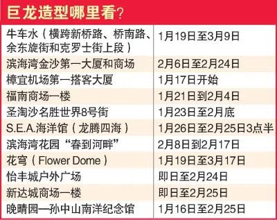 除了日前掀热议的牛车水龙年灯饰外,其他地点如滨海湾金沙、圣淘沙名胜世界和S.E.A海洋馆、新达城、福南商场、怡丰城和樟宜机场、晚晴园等至少10个热门场所的各种和龙有关的造型已陆续亮相。