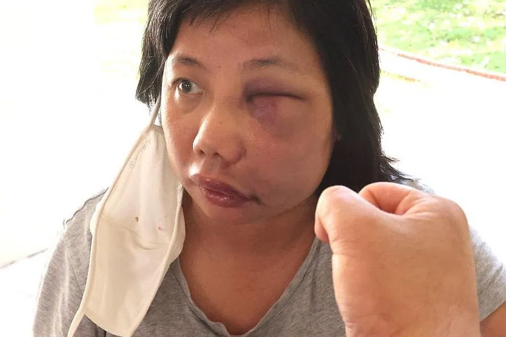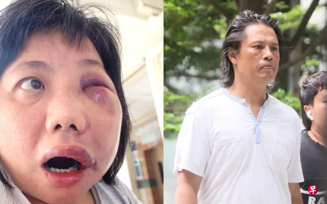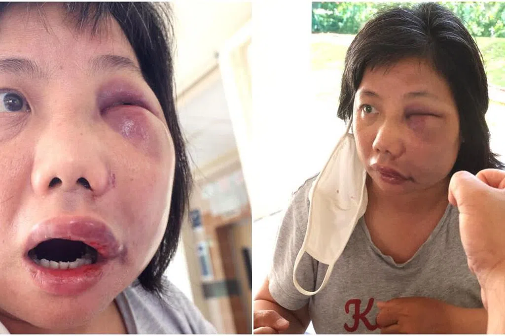 两人之后到路口停下谈话,受害者刚从电动脚踏车上下来,被告就一拳打在她的脸上,之后再接连打两拳,导致受害者晕眩倒在一旁的车上。